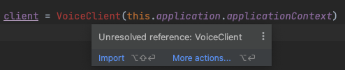 VoiceClient is the main class used to interact with the Android client SDK. Prior to usage, you have to initialize the client by providing an instance of the Android Context class.